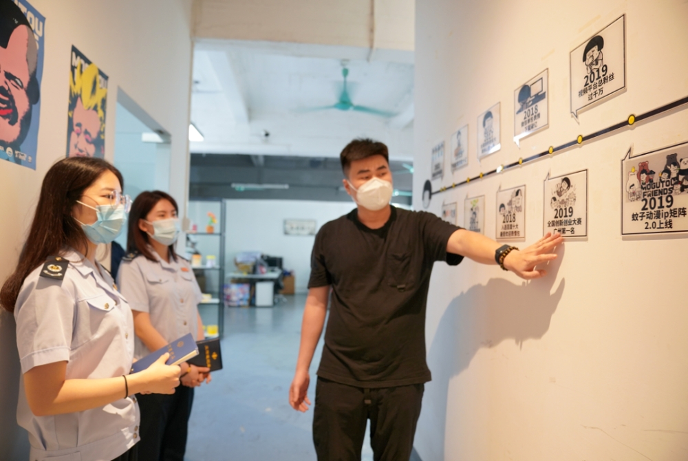 图为广州税务部门派出的“税务青年助企团”走进文创企业,助力文创企业IP进一步开拓市场。