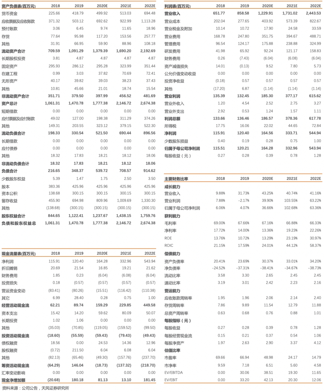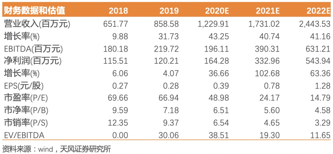 预计公司2020-2022年实现归母净利润1.64亿、3.33亿和5.44亿,对应当前PE分别为49、24、15倍,维持“买入”评级。
