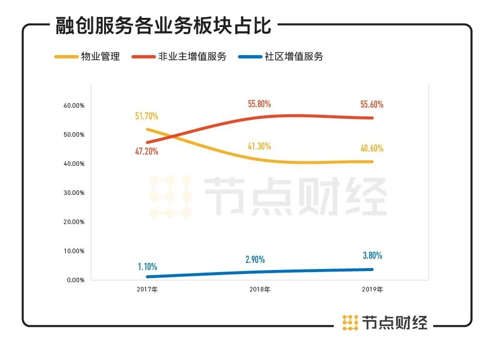 从招股书中的内容来看,融创服务显示已经意识到了该问题,其在招股书中表示,“未来几年,随着大量房地产开发项目交付及外扩力度加大,非业主增值服务的收入预计将会稳步下降。”