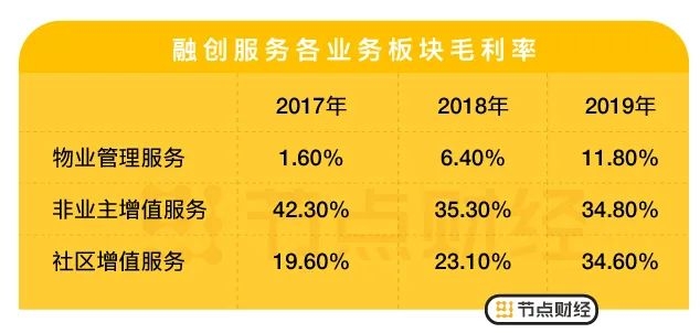 进一步分析,报告期内,核心业务也是营收占比较大的业务板块——物业管理服务,其毛利率过低或是拉低融创服务整体毛利率的诱因之一。