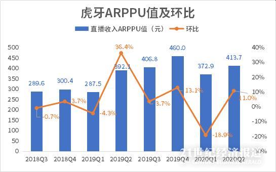 在一季度,虎牙的付费用户大增,但用户的支付能力被削弱,所以只是增量不增收,一季度的ARPPU值反而出现环比下降的情况。在二季度,虎牙的内容,产品和服务都得到丰富和增强,付费用户增加,虎牙的ARPPU在二季度环比恢复增长,由一季度的372.9元环比增长11%至413.7元,同期斗鱼的ARPPU值为306元。
