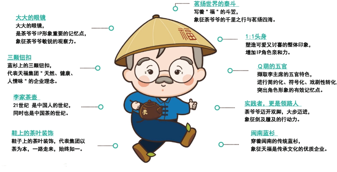 近期,传统茶品牌天福茗茶打造以茶文化为主题的IP形象——天福茶爷爷。