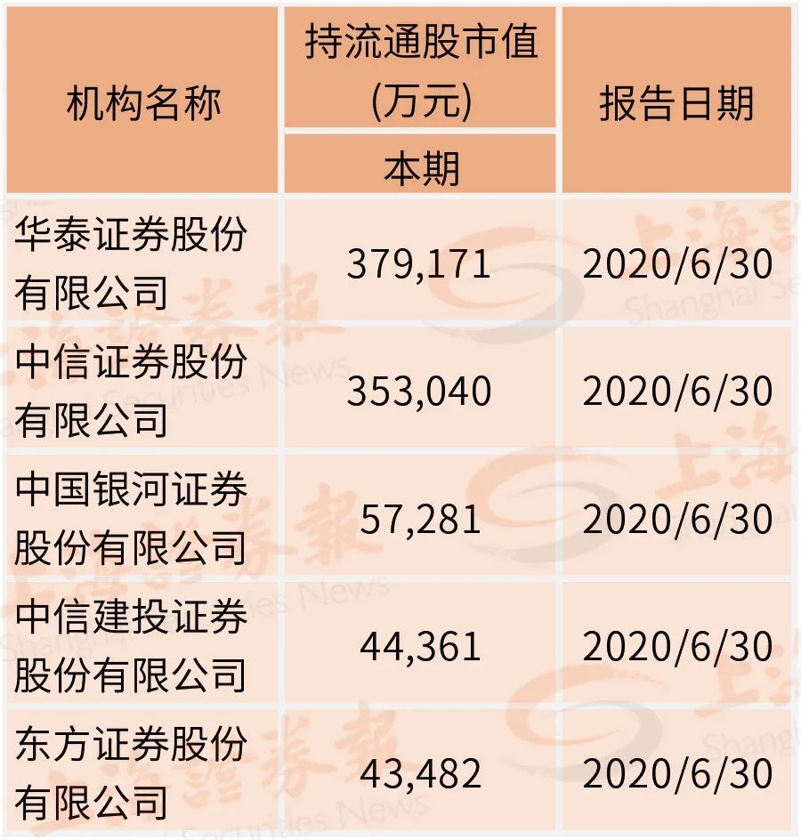 据Choice数据统计,截至8月14日, 在已经公布2020年半年报的上市公司中,华泰证券持股市值为37.9亿元,居于行业首位;其次是中信证券,持股市值35.3亿元;银河证券的持股市值为5.7亿元,居于第三位。