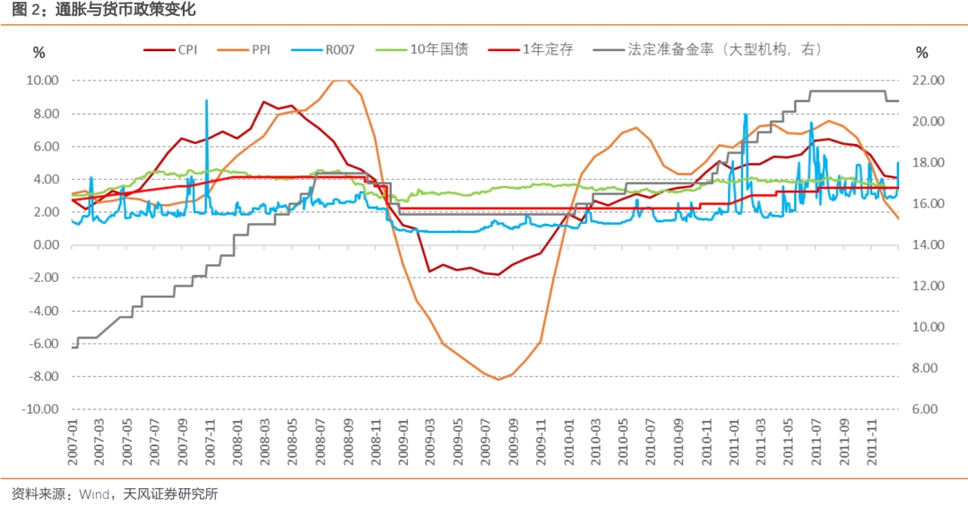 通胀是货币现象,次贷危机之后高通胀的必要条件是货币持续高速扩张。货币扩张有两大因素:一是国内强刺激下经济恢复和信贷扩张,二是发达国家量化宽松下资本大规模流入带来货币被动投放。这一时期,M2、社融增速明显高于名义GDP。