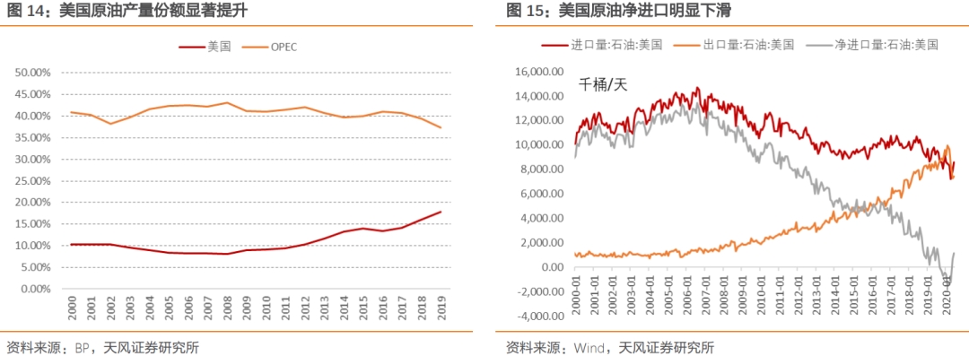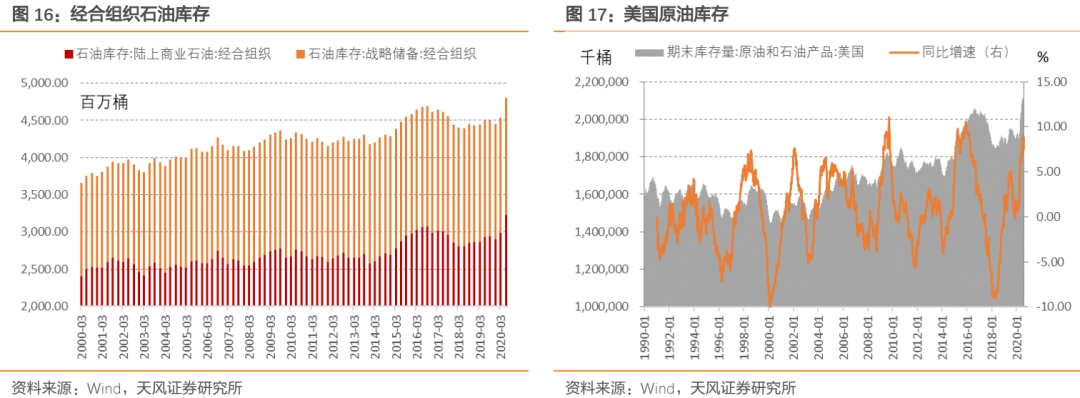 但本轮油价上涨面临一些制约:(1)国际原油需求量最多的是美国,增量贡献最多的是中国,但美国由原油净进口国变为净出口国(近期进口量有所增加),而中国此次刺激力度较弱反弹力度预计不及前期水平;(2)国际原油库存显著高于次贷危机之后,还有一段时间的去库存阶段;(3)如果油价回到50-60美元,页岩油供给将再度增加。