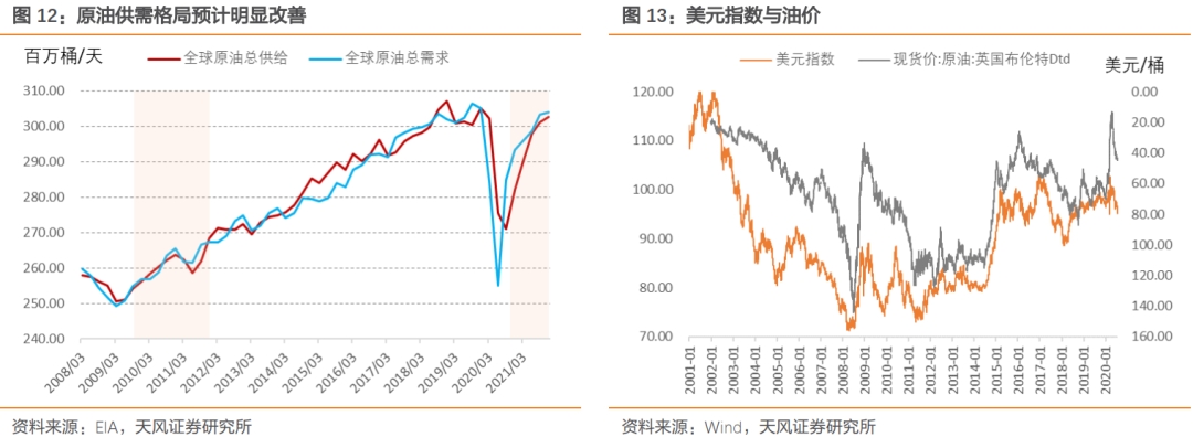 随着全球经济从疫情中恢复,供需格局预计明显改善,美联储如果长期维持宽松,叠加新兴市场经济复苏,中期来看预计美元整体偏弱,国际油价大概率将继续回升。