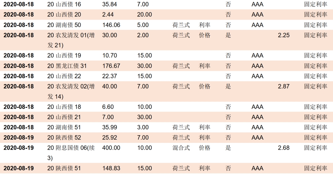 根据已公布的利率债招投标计划,下周将发行61支利率债,共计2713.86亿。其中地方债有54支,合计1643.86亿。