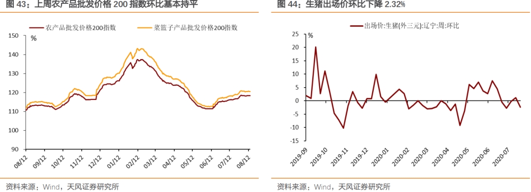 上周农产品批发价格200指数环比基本持平;生猪出场价环比下降2.32%。