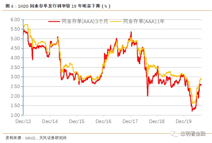 净息差改善改善。1H20净息差2.10%,较19年上升16BP。主要是1H20计息负债成本率较19年下降17BP之贡献,负债成本大降是由于1H20市场利率大幅走低带来的同业负债及同业存单成本大幅下降,1H20存款成本率2.56%,较19年上升1BP。考虑到近期同业存单利率走高,后续息差或承压。