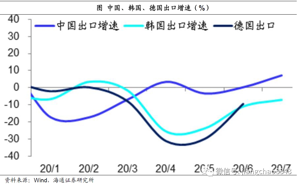 美国是全球经济的龙头,其经济复苏意味着全球经济也有望走出疫情导致的衰退。从中国、德国、韩国等主要出口国家的外贸数据来看,在5月份以后的出口增速均出现明显改善,这也从侧面印证了3季度全球经济正在逐渐复苏,并且拉动了全球出口的改善。