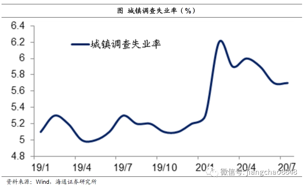 从统计局公布的城镇调查失业率来看,峰值出现在今年2月份的6.2%,之后开始逐渐下降,这也证明了中国就业在持续改善,服务业经济在持续好转。