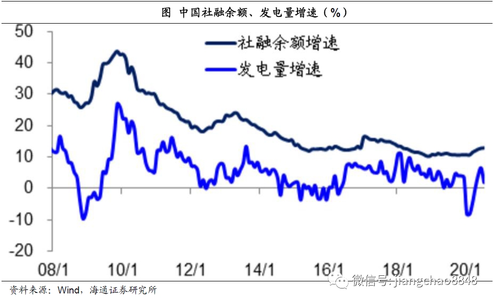 首先,历史数据表明,社会融资总量余额增速是决定中国经济走势的重要领先指标,在08年之后,中国经济曾经出现过3轮经济复苏,在每一轮复苏之前的一到两个季度,都提前出现过社融增速的回升。这一次也不例外,在3月份社融增速开始回升,同时发电量增速也从底部开始反弹。