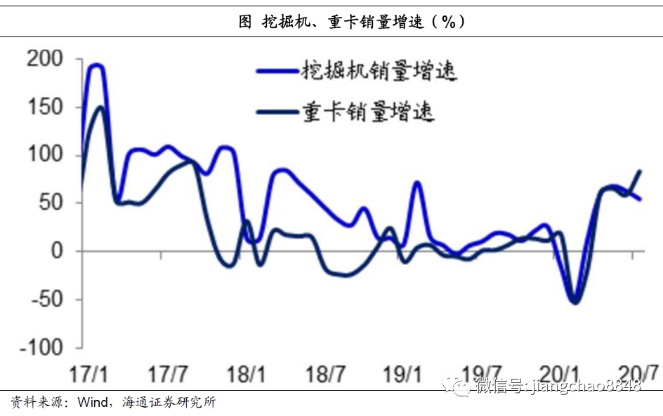 另外,7月份的挖掘机和重卡销量增速分别升至55%和83%,位于近两年的高位水平,也从侧面印证了工业经济的复苏。