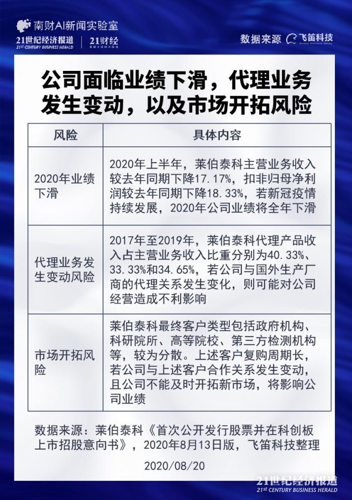 公司招股说明书披露的风险点中,有三个风险值得关注。分别为2020年业绩下滑、代理业务发生变动,以及市场开拓风险。