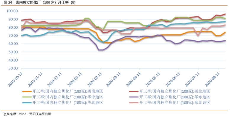 需求方面,本周焦化厂综合开工率为81.33%,周环比上升0.94%。