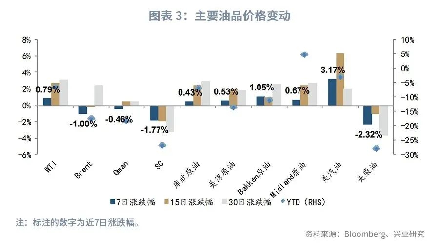 EIA报告喜忧参半。美国除却战略储备的商业原油库存降幅不及预期,但汽油库存降幅超预期。上周美国国内原油产量减少持平于至1070万桶/日。炼厂原油加工量本周下降17.2千桶/日,炼厂开工率环比下降0.1%。