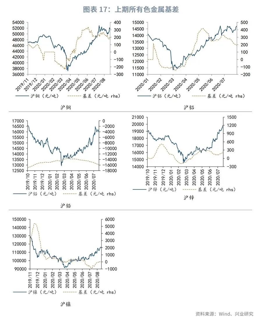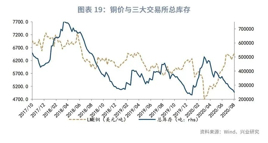 供给方面,当前矿端供应依旧偏紧,TC保持在50美元/吨下方,机构预测今年全球铜产量将有所下滑。不过,疫情对铜矿的干扰高峰期可能已经过去,智利等主要生产国正在恢复生产和运输。世界金属统计局(WBMS)报告显示,1-6月全球铜市供应短缺15.5万吨,而中国表观需求量同比增长14.9%。必和必拓(BHP)预期智利北部的Spence铜矿扩产项目(Spence Growth Option)在投产的前四年,年产可达到30万吨,预计将在2020年12月至2021年3月期间投产。受疫情影响,这一时间比原定的今年7-12月份有所推迟。