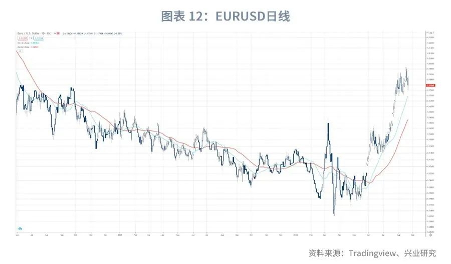 美联储纪要未释放额外宽松信号。周四(8月20日),美联储公布7月会议纪要,美联储官员强调了“额外财政援助”的重要性,并强调高频消费者数据最近表现疲软。会议纪要显示,美联储认为实施收益率控制政策只会带来很小的好处,目前并不考虑实施,但未能仍是可能的政策选择。会议纪要公布后美元指数反弹。事实上,美联储官员近期讲话的立场和会议纪要一致,但在此前极度乐观的氛围中市场忽视了美联储政策倾向已经转向克制。