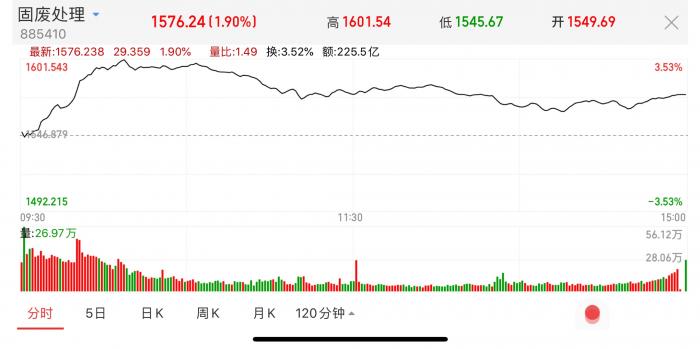 8月26日,三大指数集体收跌,固废处理板块异军突起,以1.90%的涨幅逆势收红。中电环保(300172)、永清环保(300187)、科融环境(300152)、中环环保(300692)、天壕环境(300332)、雪浪环境(300385)、中建环能(300425)、东江环保(002672)、绿色动力(601330)等9只个股涨幅超过10%,其中5只涨停。