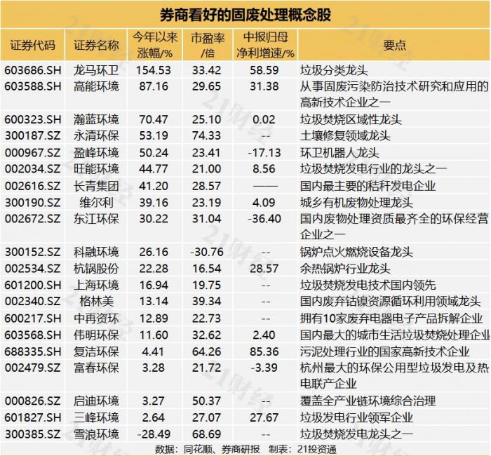 与此同时,各地垃圾分类持续推进也为产业带来投资机会,固废产业链需求将持续释放,利好固废处理板块。安信证券建议关注优质垃圾焚烧标的,此外随着制取沼气等资源化方式的推进,叠加垃圾分类的有序推进,利好城乡有机废物处理。