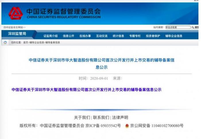 9月1日晚,深圳证监局官网披露了深圳华大智造科技股份有限公司(下称“华大智造”)辅导备案公示文件。公告显示,华大智造拟首次公开发行股票并在境内证券交易所上市,现已接受中信证券股份有限公司的辅导,并于8月21日在深圳证监局进行了辅导备案。这意味着华大智造正式进入上市辅导期。