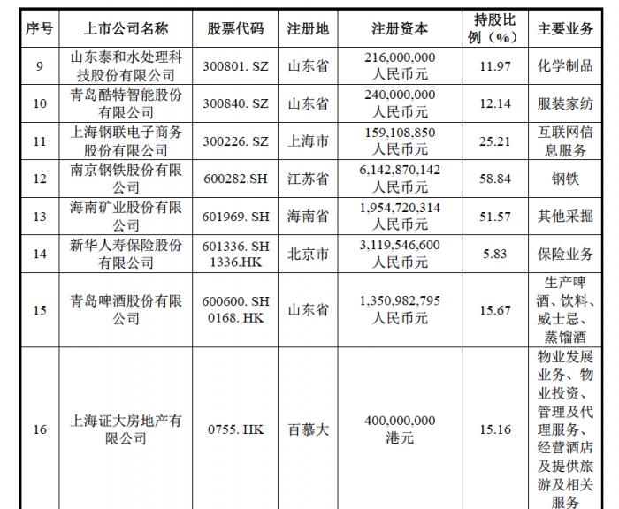 除持有豫园股份68.59%股份以及通过豫园股份持有招金矿业(01818.HK)23.34%股份和通过复星产投持有招金矿业3.24%股份外,豫园股份实控人郭广昌还持有复星医药(600196.SH)38.51%股份、三元食品20.45%股份、乐鑫科技(688018.SH)7.12%股份、博天环境(603603.SH)5.62%股份、中光防雷(300414.SZ)19.94%股份、中山公用(000685.SH)12.35%股份、青岛啤酒(600600.SH)15.67%股份、天喔国际(1219.HK)6%股份、都市丽人(2298.HK)10.61%股份等境内外42家上市公司股份。