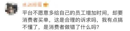 有人认为这一改变非常人性化;有人质疑,平台闭口不提派单系统给骑手带来的压力,却将责任转移给消费者,让用户有种被道德绑架的感觉;也有网友提出,这个功能无法从根本上解决问题,情况还是不会改变。