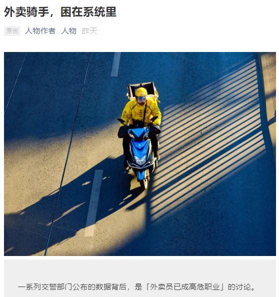 文中一位外卖骑手如此形容自己的职业:“送外卖就是与死神赛跑,和交警较劲,和红灯做朋友。”