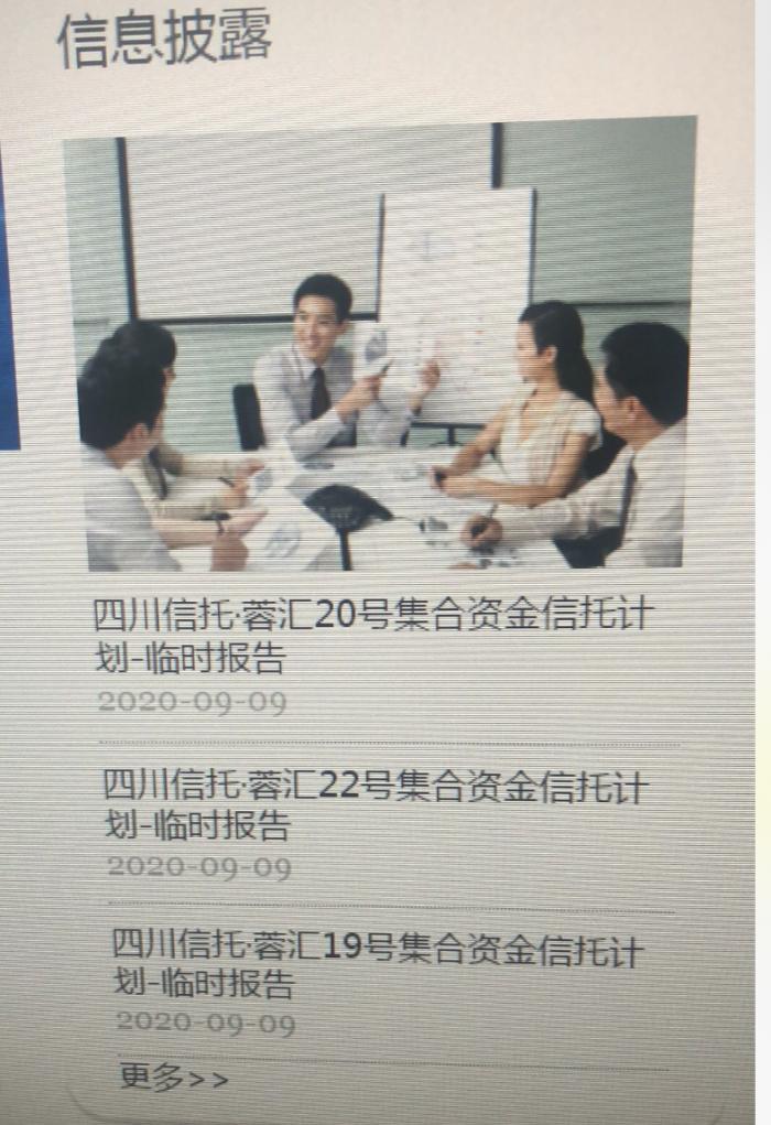 记者查询四川信托官网发现,其主页的信息披露栏确实显示,9月9日披露了四川信托·蓉汇20号集合资金信托计划-临时报告,具体报告信息需要交易密码才可查询,且该栏目点进去后并不会显示临时报告这列。