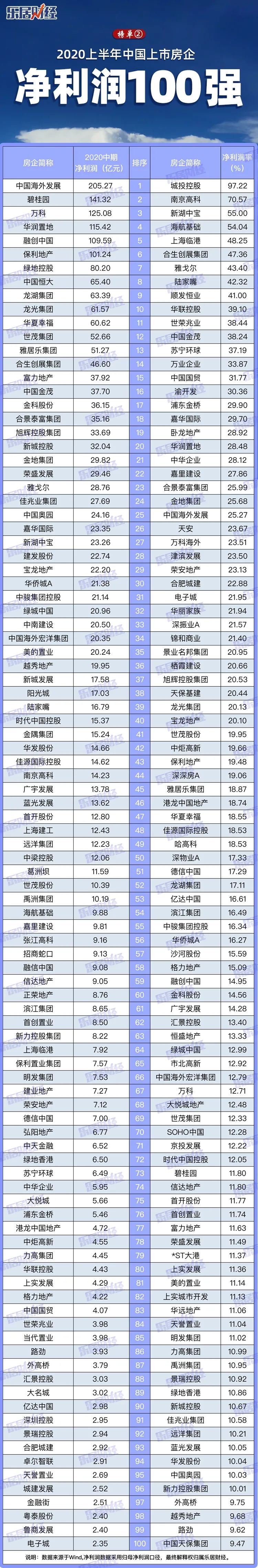 除了榜单中所呈现的,据统计,在内地和香港上市的所有房企中,超100家房企的净利润出现了不同程度的下滑。