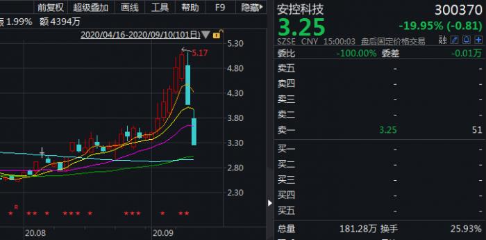 9月8日,天山生物等三龙头停牌前一天,安控科技收盘价为5.07元,随后连续两个交易日顶格跌停。