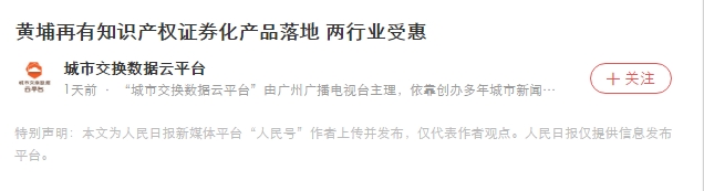 黄埔再有知识产权证券化产品落地两行业受惠