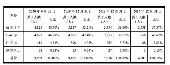 有才气的年轻人给了科技公司活力,京东数科则尤为“朝气蓬勃”。股书显示,截止2020年6月30日,京东数科在岗员工有9989人,数据显示,80后员工占比达95.5%,其中90后员工又占48.7%。