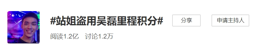 近日,“站姐盗用吴磊里程积分”的话题登上微博热搜榜。
