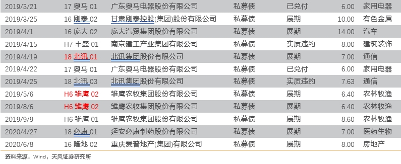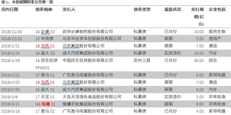 另一方面,非公开债投资人较为集中,如发行人出现流动性紧张,更易与投资者协调,由于信息披露要求不高,负面影响也能降到最低,因此违约及展期债券以私募债为主。这对投资人来说这意味着即使对同一主体,不同券种也带来了除流动性溢价以外的信用风险。从对信用风险券的分析也可知,非公开债信用风险事件处置结果往往不及公开债,部分私募债甚至出现了反复展期的情况。