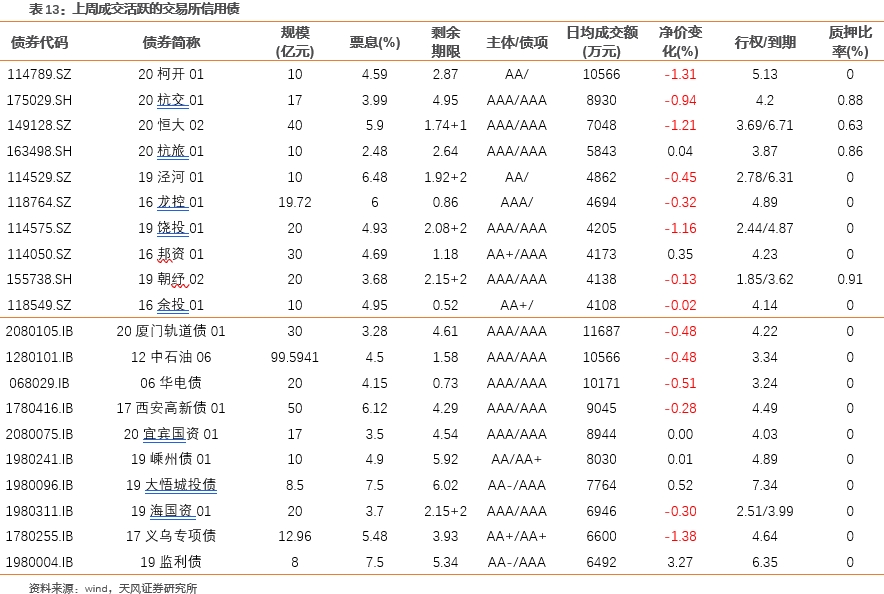 信用债的单周发行量小幅上升,总偿还量小幅上升,净融资额较上周小幅下降。短融发行量小幅上升,总偿还量大幅上升,净融资额较上周小幅下降;中票发行量较上周大幅下降,总偿还量小幅上升,净融资额较上周小幅下降;企业债发行量较上周大幅上升,总偿还量小幅上升,净融资额较上周小幅上升;公司债发行量较上周大幅上升,总偿还量小幅下降,净融资额较上周大幅上升。