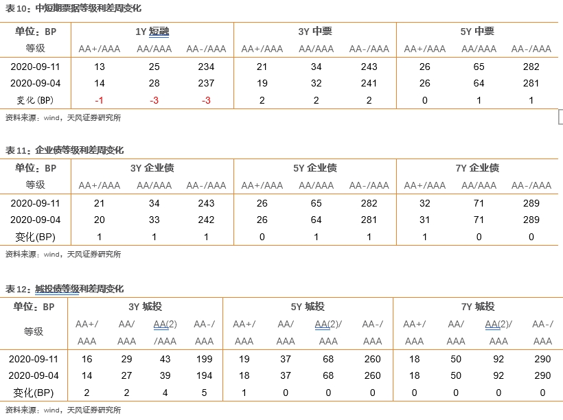 3)发行利率方面,以中短期票据及定向工具为例,近期3年期定向工具与AAA中票间的差额走阔,是否具有持续性则仍需观察。