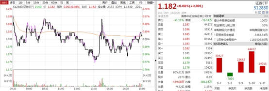 14日市场涨得犹犹豫豫,虽然上午市场向上冲了一波,但是市场风向标证券ETF(512880)不为所动,并没有跟随市场上涨,下午作妖一把后也回到了原点。 后续小伙伴们可以继续关注证券ETF(512880)。