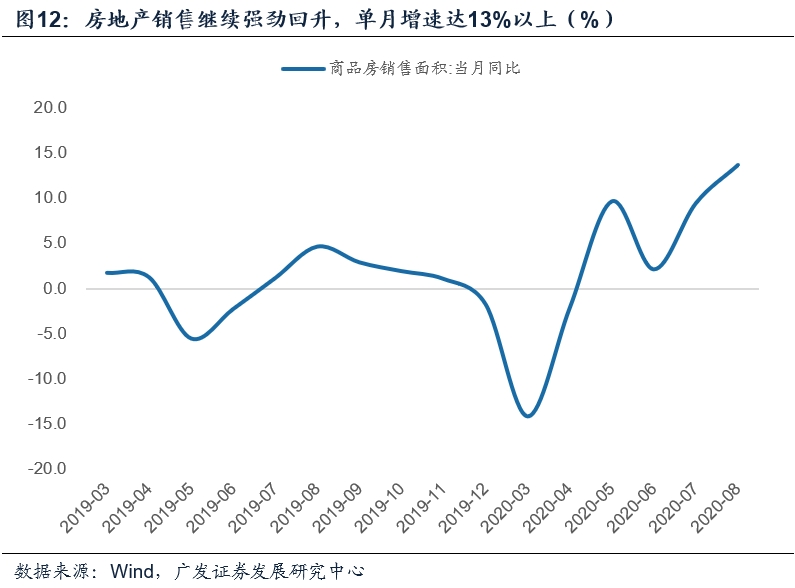 第五,固定资产投资继续回升,各部分累计增速均有所回升。其中基建增速从1.2%至2.0%,但隐含的单月增速(7%)略低于预期,可能和专项债节奏以及7-8月专项债投向向棚改的分流有关。地产投资维持在11.8%的高位。
