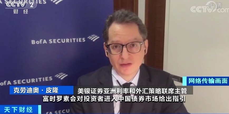 美银证券亚洲利率和外汇策略联席主管 克劳迪奥•皮隆:人民币的国际化是个非常重要的因素,在9月24日左右,富时罗素会对投资者进入中国债券市场给出指引,这可能会为中国纳入其全球政府债券指数铺平道路,可能会带来1400亿美元的资金流入。
