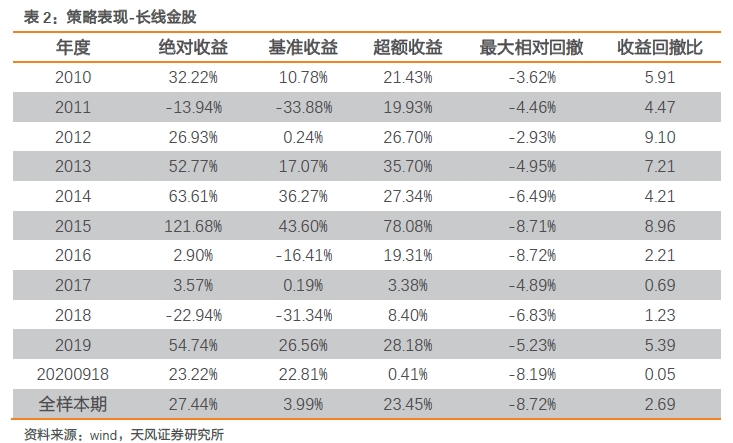 策略在2010-2017回测期内实现了26.45%的年化收益,超额基准21.08%,且在回测期内的7个完整年度里,每个年度的超额收益均超过了11%,具有非常好的稳定性。