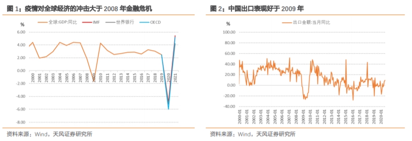 综合来看,外需总量收缩的没有金融危机期间那么大,同时疫情的特殊性又提高了中国出口份额,两者共同作用支撑中国出口韧性。