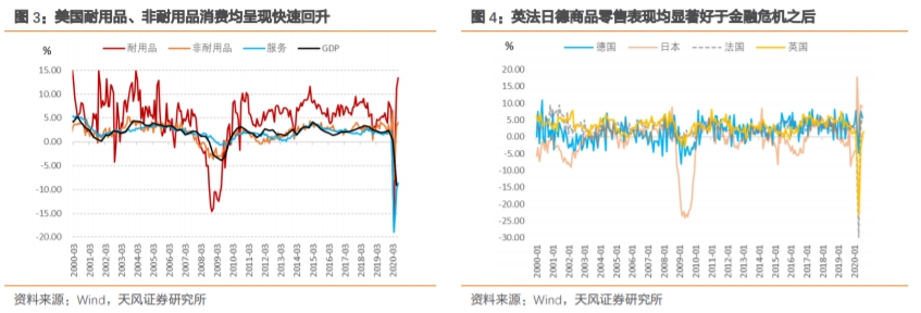 美欧日等发达经济体均呈现这一特征,虽然GDP大幅负增长但居民消费特别是商品消费快速回升。考虑到中国货物贸易顺差、服务贸易逆差的事实,外需的收缩幅度其实比预期的要小。