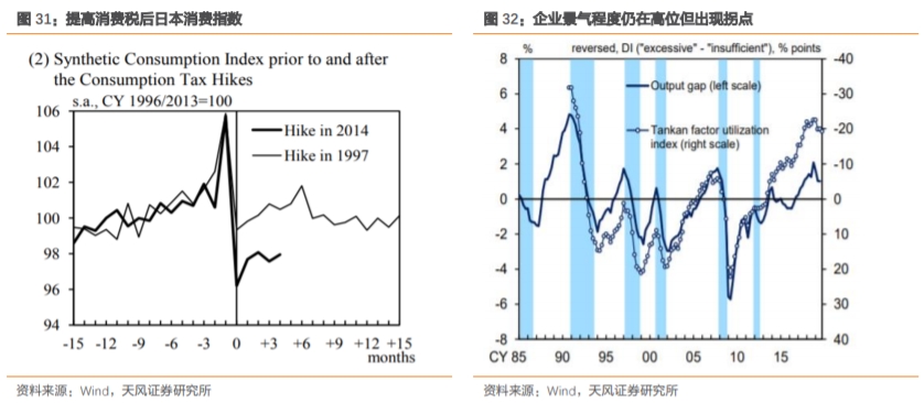 日本于2019年10月1日起正式将消费税提高至10%,而此前日本两次提高消费税都对日本经济产生冲击,因而就算不考虑疫情影响2020年日本消费在很大程度上都会受到加税的影响。以2014年的加税为例:2014年4月日本提高消费税(宣布是在2013年10月),经济冲击主要在2014年一季度,随后消费缓慢上升,但并不是V型反转,而是L型。即使在2014年加税后四年,2018年第二季度日本的家庭消费仍未恢复到上一次加税之前的2014年第一季度的水平。