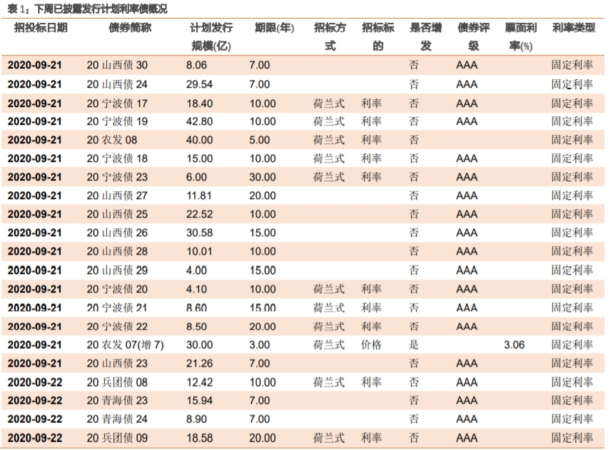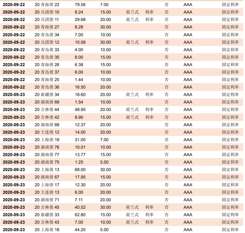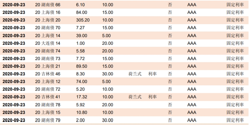 根据已公布的利率债招投标计划,下周将发行80支利率债,共计2584.12亿。其中地方债有77支,合计2114.12亿。