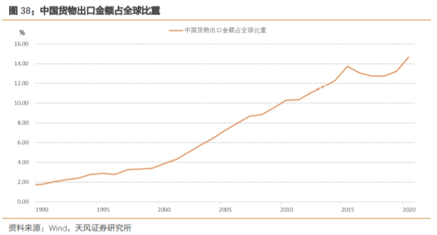 中国出口跟随全球需求同步回升的前提是,出口份额不出现下滑。如前文所述,疫情之后由于防疫物资、“宅经济”以及海外供给受限导致的份额替代,中国出口的份额其实是提升的,这是今年中国出口表现较好的重要原因。