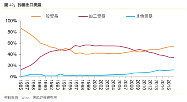 海外国家在我国设立的产业链主要通过加工贸易进行出口,而加工贸易出口一直是我国出口的重要组成部分,虽然2008年金融危机以为占比有所下降,但近年来仍维持在30%-40%之间。如果明年海外国家“产业链回归本土”的步伐进一步加快,那么我国出口(特别是加工贸易出口)将会在一定程度上受到冲击。