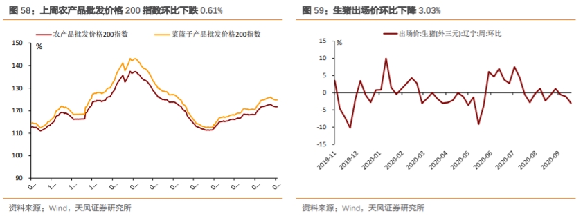 上周农产品批发价格200指数环比下跌0.61%;生猪出场价环比下降3.03%。
