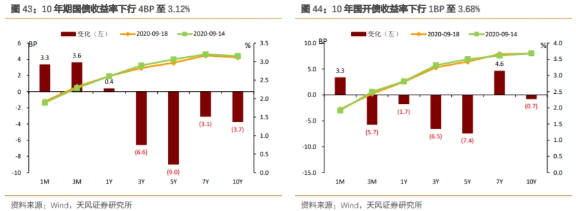 本周资金面先松后紧,MLF超额续做,债市情绪先扬后抑,长债收益率小幅下行。全周来看,10年期国债收益率下行4BP至3.12%,10年国开债收益率下行1BP至3.68%。1年与10年国债期限利差收窄4BP至51BP。1年与10年国开债期限利差扩大1BP至88BP。