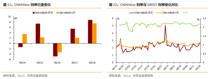 本周央行公开市场净投放2100亿元,资金面先松后紧。银行间隔夜回购利率上行53BP至2.12%,7天回购利率上行19BP至2.28%;上交所质押式回购GC001上行106BP至3.29%;香港CNHHibor隔夜利率上行47BP至2.67%;香港CNH Hibor7天利率上行18BP至2.73%。